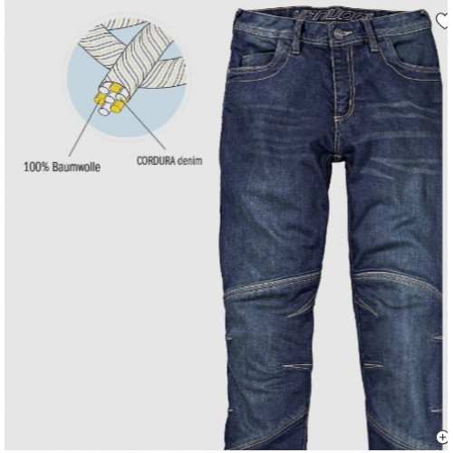 Міцні мотоциклетні джинси на кожен день. Перевірені синтетичні волокна та міцна бавовна поєднуються, щоб створити надзвичайно міцну тканину. Кевларові панелі забезпечують додатковий захист в особливо вразливих точках удару.